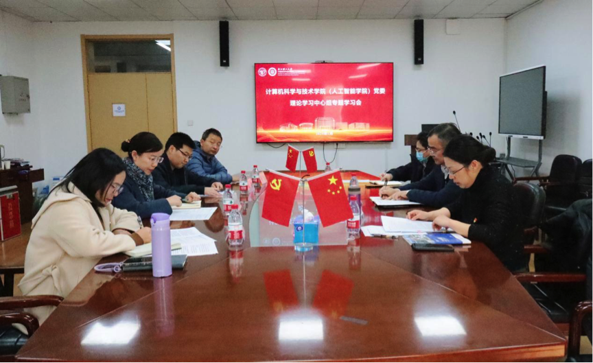 1月3日下午,计算机科学与技术学院(人工智能学院)党委理论学习中心组在10-315召开专题学习会。校党委委员、副校长姚菊明到会巡听指导。会议由学院党委书记黄黎主持,学院党委理论学习中心组成员、组织员参加学习会。