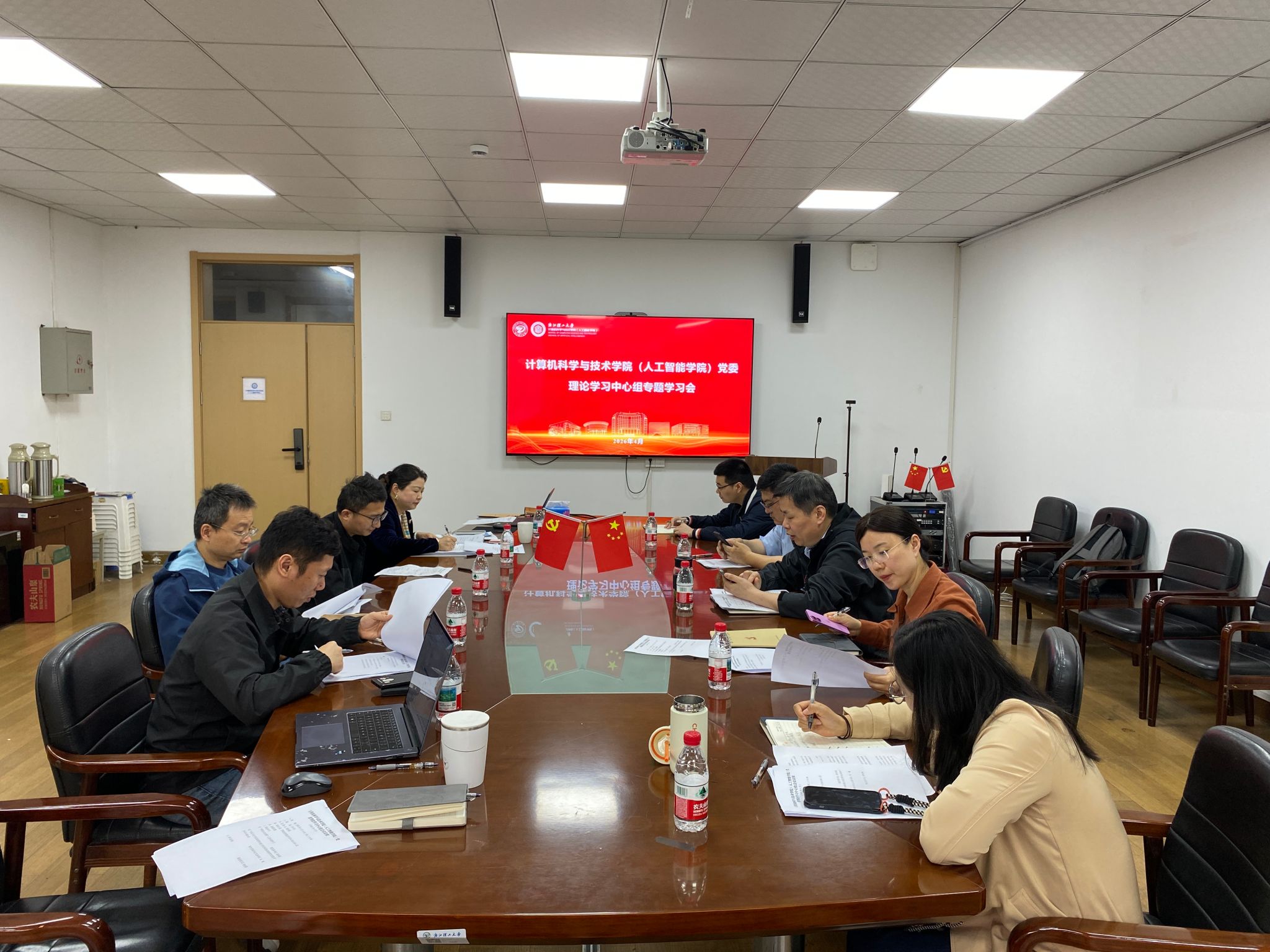 为持续强化理论武装,切实把学习成果转化为推动学院高质量发展的实际行动,4月14日,计算机科学与技术学院(人工智能学院)党委理论学习中心组开展四月份集中理论学习。学院理论学习中心组成员参加会议,学院党委书记徐伟强主持会议并作领学和总结讲话。