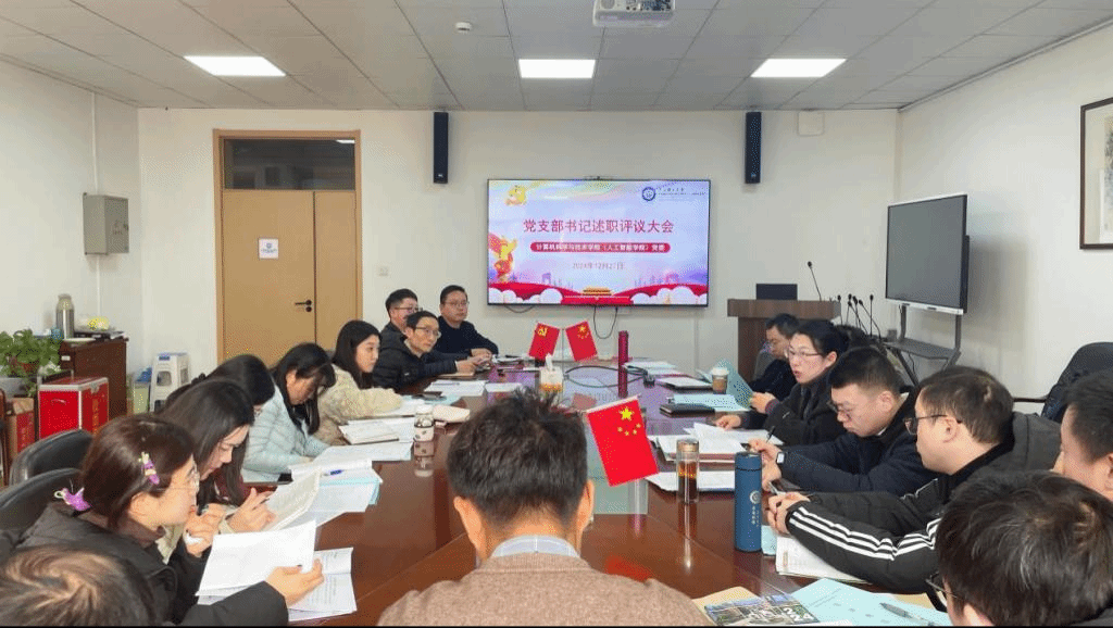 为认真贯彻新时代党的建设总要求和新时代党的组织路线,不断提升支部建设质量和工作水平,12月27日上午,计算机科学与技术学院(人工智能学院)党委在10-315召开2024年度党支部书记述职评议会。学院全体党委委员、党支部书记参加会议。会议由学院党委副书记丁宁主持。
