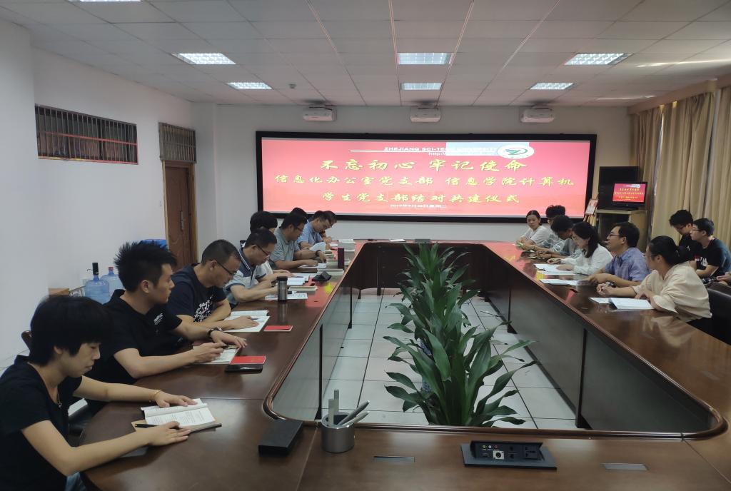 9月25日下午,我院计算机学生党支部与信息化办公室党支部结对共建活动在信息化办公室会议室顺利举行。信息化办公室主任陈善晓,信息化办公室党支部书记、副主任孙显水,副主任刘翔,院党委副书记方水明,计算机学生党支部书记顾林彬,2019级辅导员徐柳,双方党支部全体成员以及结对学生参加了本次活动。活动由孙显水主持。