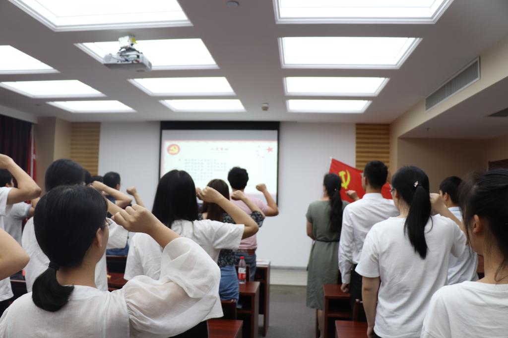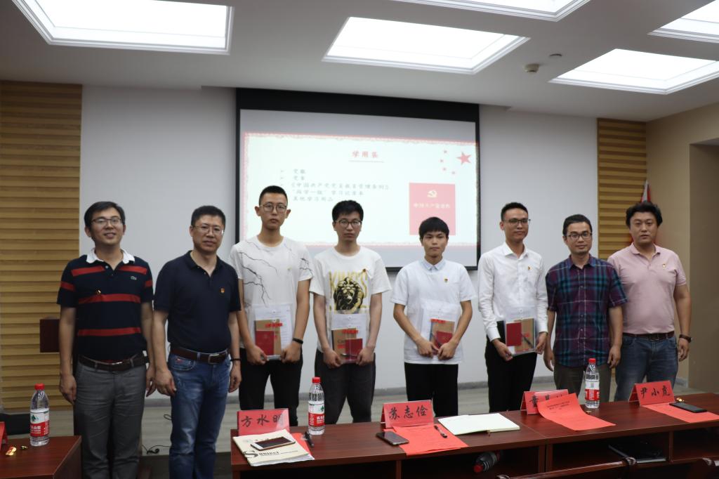 首先,方水明带领新党员进行入党宣誓,老党员则重温入党誓词,回忆入党的初心。会议第二项议程是新发展党员的入党仪式。根据相关文件精神,我院党委2019年上半年共发展学生党员49名。与会领导分别为新发展新发展学生党员佩戴党员徽章,颁发学用袋,学用袋中为各新发展党员准备了党章、《中国共产党党员教育管理工作条例》资料、记录用笔及“两学一做”学习记录本。入党仪式结束后,新发展的学生党员代表黎山山同学发言,他表示,作为党员,要坚定理想信念,在思想上、行动上入党,要自觉维护党的团结和统一,强化政治意识,为党和人民的事业奉献自己,为共产主义事业奋斗终身。尹小虎带领全体与会同志逐条深入地学习了《中国共产党党员教育管理工作条例》,为建设一支信念坚定、政治可靠、素质优良、纪律严明、作用突出的党员队伍提出了更高要求和期望。信息学院组织员吴云枭在会上通报了第二批标准化党支部评定结果,学院通信学生党支部、智科学生党支部、数媒教工党支部、电子教工党支部四支部被评为优秀党支部,童基均为优秀支部授牌。