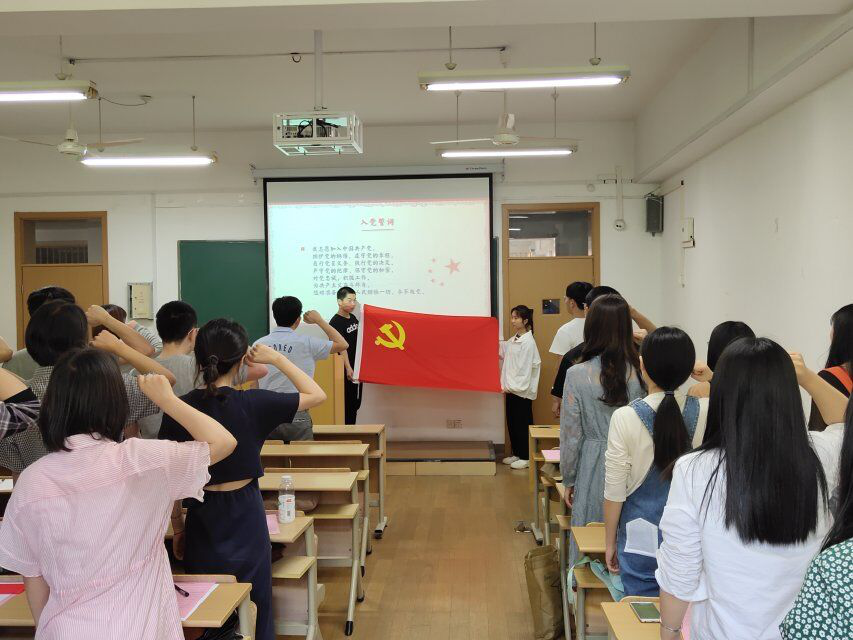 会上,全体毕业生党员在领誓人带领下重温入党誓词,督促毕业生党员不忘自己在党旗下做出的庄严承诺,在离校毕业前的关键时刻站好最后一班岗。接着,吴云枭解读学院有关开展“五个一”教育活动的内容,包含重温一次入党誓词,写一份给学院学校的毕业赠言、参加一次支部座谈会、参加一次低年级交流以及站好最后一班岗,全体毕业生党员认真聆听并牢记相关要求。另外,她还对毕业生党员组织关系转接流程作了详细地说明和具体安排,并提醒毕业生党员认识党组织关系转接工作的重要性。黄诗莹分析了毕业生党员的就业情况,其中电子学生党支部、智科学生党支部的就业率位于前列。会议过程中,全体毕业生党员认真仔细地聆听,流露出对母校的不舍与依恋,并深刻思考自身未来的发展道路。
