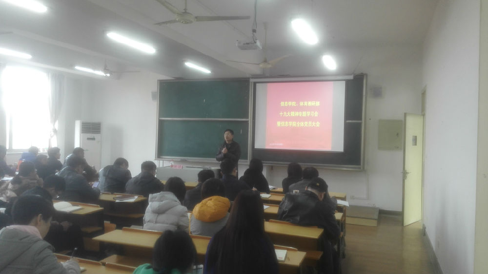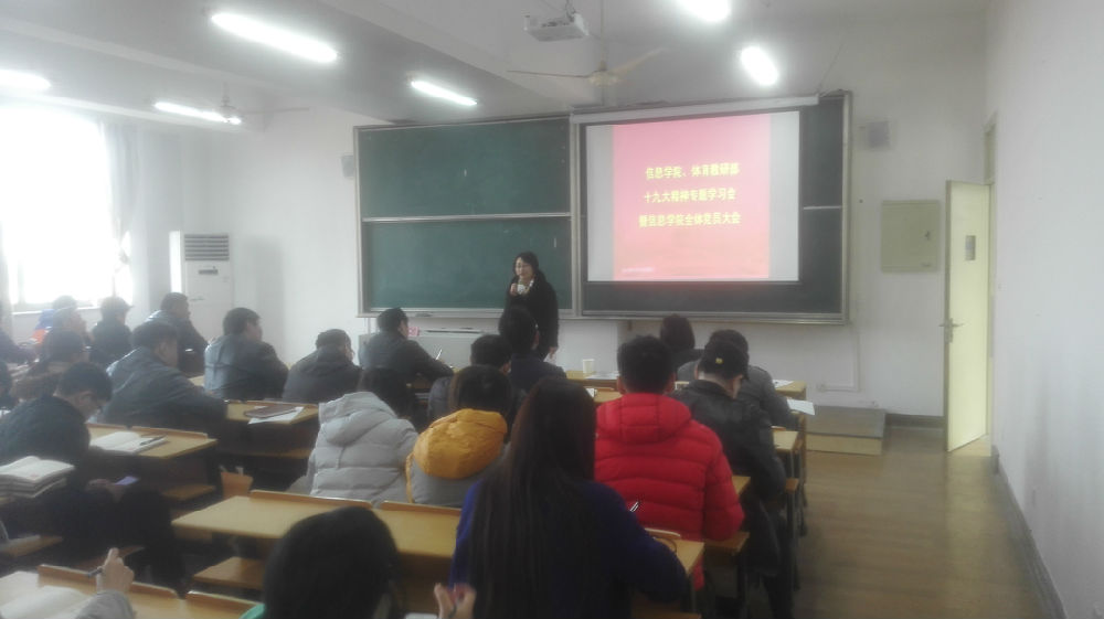 12月6日,校党委组织部、统战部部长姚珺为信息学院全体教工党员作十九大精神专题学习会。她从历史党章,数字党章,变化党章三个维度对十九大党章进行了解读。重点分析了中共一大、中共七大、中共十二大党章的历史变换,列举了十九大党章修改过程中、党章中和与党章有关的热门词汇的数据,重点对十九大党章中六点变化作了解读。整个报告内容详细准确,理论性强,在场教工党员对新党章有了更为深刻的理解。