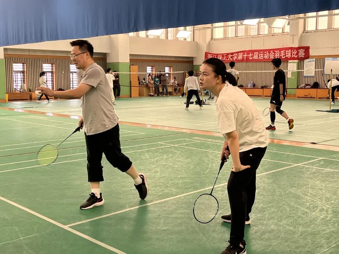 为丰富教职工体育文化生活,促进教职工身心健康,展现良好的精神面貌,10月27日,由院工会和院青促会共同主办的2021年信息学院教职工混双羽毛球比赛在体育馆落下帷幕。此次活动得到了学院领导的大力支持,学院党委书记黄黎与党委委员、数字媒体与技术系主任舒挺组成搭档,副院长蒋明峰与教师尹灵芝组成搭档,副院长姚青和教师易辉国组成搭档,共同为比赛助力。