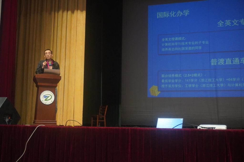 随后,计算机系主任沈炜、数媒系副主任宋瑾钰、智科系主任张海翔三位教师分别介绍了计算机科学与技术、数字媒体与技术、智能科学与技术的课程设置、发展前景等方面的内容,解答同学们在专业分流中的迷茫与困惑。