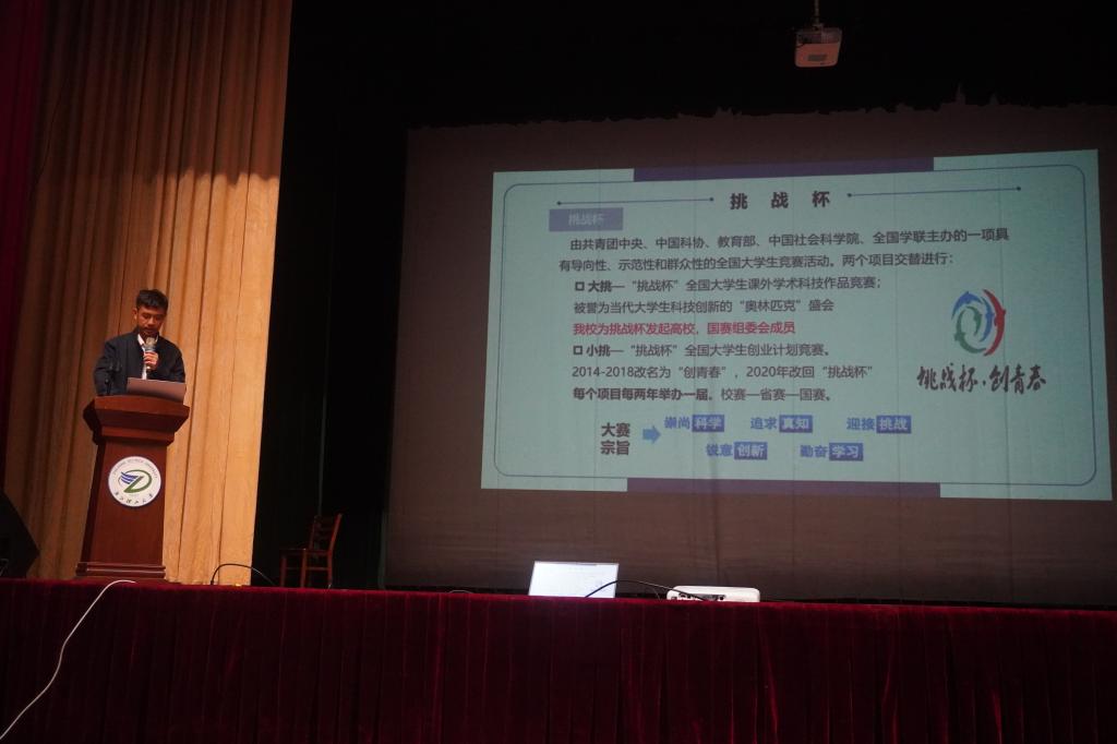 在科研宣讲环节,学工办主任朱诗威带来了精彩的报告。他深入讲解了挑战杯、新苗人才计划以及校级科技创新项目的参赛流程,展示了我院过去的丰硕成果,列举了参加科研赛事的七大收获,最后介绍了参加学科竞赛的途径。