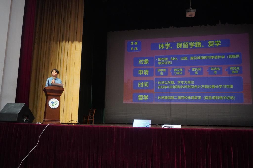 教学秘书张兴红则针对本科生教学事务进行了讲解,向同学们普及了一系列教学政策和制度,帮助同学们更好地适应大学生活和学术氛围。