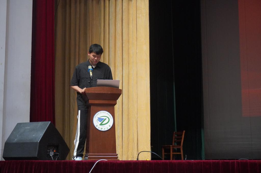 接下来,年纪优秀学子代表章智博同学分享了自己的学习经验,他毫无保留地与同学们探讨了如何看待内卷、绩点的作用、怎样高效利用时间等问题,从学生的角度给出切实有效的学习方法。