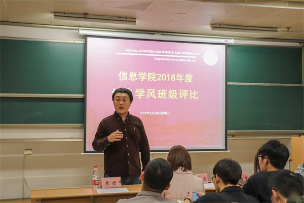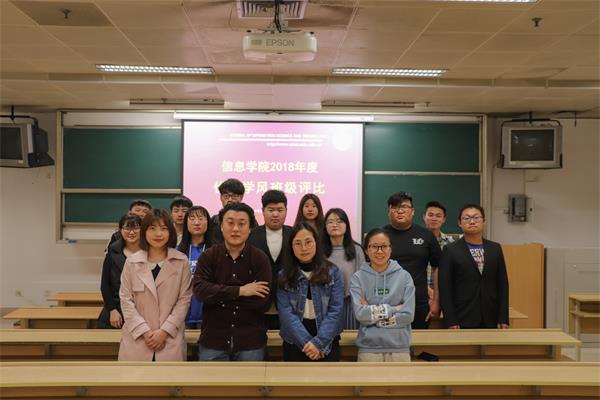 为进一步加强学风建设,促进良好班风、学风的形成,充分发挥先进典型的榜样示范作用,我院于3月20日下午在2N-115教室举办了信息学院2018年度优良学风班级评选活动。院团委书记、学工办主任尹小虎,15级辅导员黄诗莹,16级辅导员吴云枭,17级辅导员楼倚杉出席本次活动。