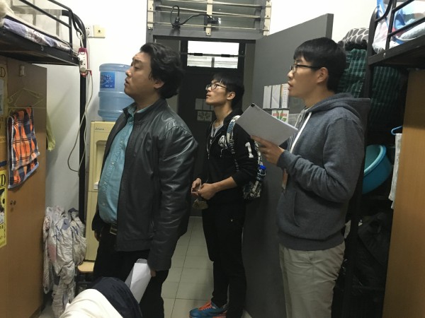 11月2号,信息学院学生工作办公室主任、14级辅导员尹小虎,社区主席沈丽芳和社区纪检部学生干部对大三男生寝室进行全覆盖卫生检查。