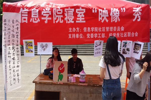 历经半个月的层层筛选后,从众多寝室中脱颖而出了10份精致且兼具创意与热情的作品。4月22日,信息社区在学生活动中心门口摆摊,进行寝室“映像”SHOW的作品展示,同时通过本次活动展示,在学校内展现属于信息学院寝室的风采。