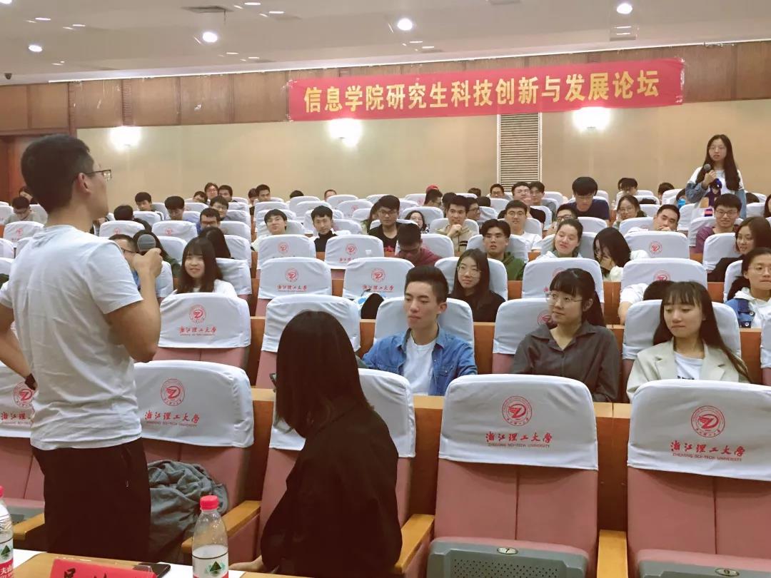 近日,信息学院第一届研究生创新发展论坛在行政楼二楼报告厅举行,有来自浙江大学、南京大学、杭州电子科技大学等高校的信息与通信工程、航天工程专业的研究生代表以及我院研一、研二研究生参加。学院院长丁佐华教授出席了本次活动,活动由团委书记尹小虎主持。