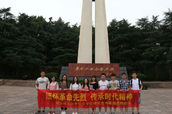 7月8日,浙江理工大学信息学院研究生会暑期社会实践小分队为响应浙江省共青团委及学校团委号召,喜迎党的十九大,共贺浙理双甲子,再次起航寻访时代精神,前往浙江革命烈士纪念馆。