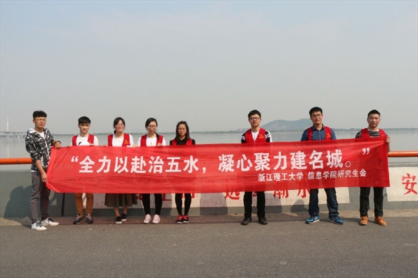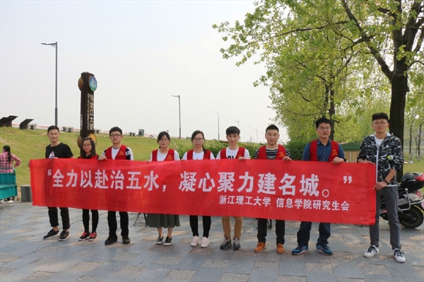 4月16日,由信息学院研究生会组织了一场以“五水共治,点滴行动”为主题的宣传活动,在钱塘江大堤成功举行。让空气清新,让山青水绿,是全体人民的共同心愿。重现碧波荡漾、水清鱼显的江南水乡风光,我们责无旁贷。