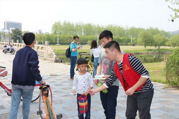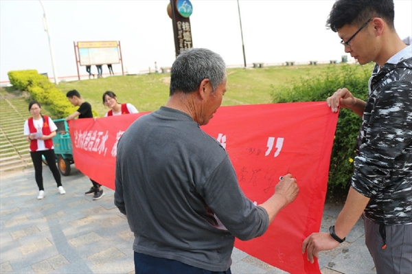活动一开始,我们16名志愿者纷纷号召正在大堤附近游玩的旅客开展了“全力以赴治五水,凝心聚力建名城。”横幅签字仪式。随着签名活动进行,志愿者活动也拉开了序幕。其他的志愿者拿着自制的宣传单页向旅客介绍本次活动的主题,宣传“五水共治”相关知识、节约小技巧、溺水后的救治和体育运动后饮水小知识等。通过向市民发放“五水共治”宣传单,普及“五水共治”等生态环保专业知识,号召并指导市民做好节水环保工作之外,还开展了河道清理等活动。在活动过程中,游玩的市民积极配合我们的工作,使得宣传工作顺利地进行。志愿者们希望用自己点滴行动助力“五水共治”。金山银山不如绿水蓝天。让我们积极行动起来,踊跃投身到“劣V类水”剿灭行动中去,吹响“凝心聚力建名城”行动号角。