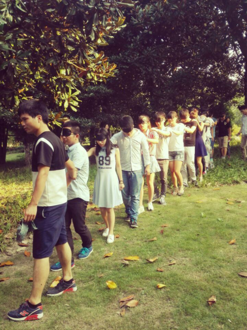本次的团建活动以促进院研会的新老成员的沟通和交流为主旨,以各种趣味活动来带动大家的热情,快速的在活动中自然地融入这个研会这个大家庭,找到一起共事的默契和归属感。第一个环节中“各位好汉请抱拳”能让我们尽快的互相记住名字,第二环节“cosplay不走样”,第三环节“荷塘月色”大家分组比赛,干事们都拿出各自的本领,在一次次友好游戏和竞争中,我们都发现了身边的队友的惊人智慧、组织能力和表演才能。而每次游戏淘汰出局的“惩罚”,更是给了队员们一个个舞台,唱歌,T台秀……无一不是才艺的展示,以及我们主席们的一首《星空》更是让中场休息都变得更加快乐惬意。在节目的最后以《盲行》采用活动、体验、感悟和提高的模式,使参与者在体验人际交往中情绪和行为的同时,产生一种心灵的碰撞、人格的互动,实现多元多赢的交流,在乐趣中受训、在实效中成长。