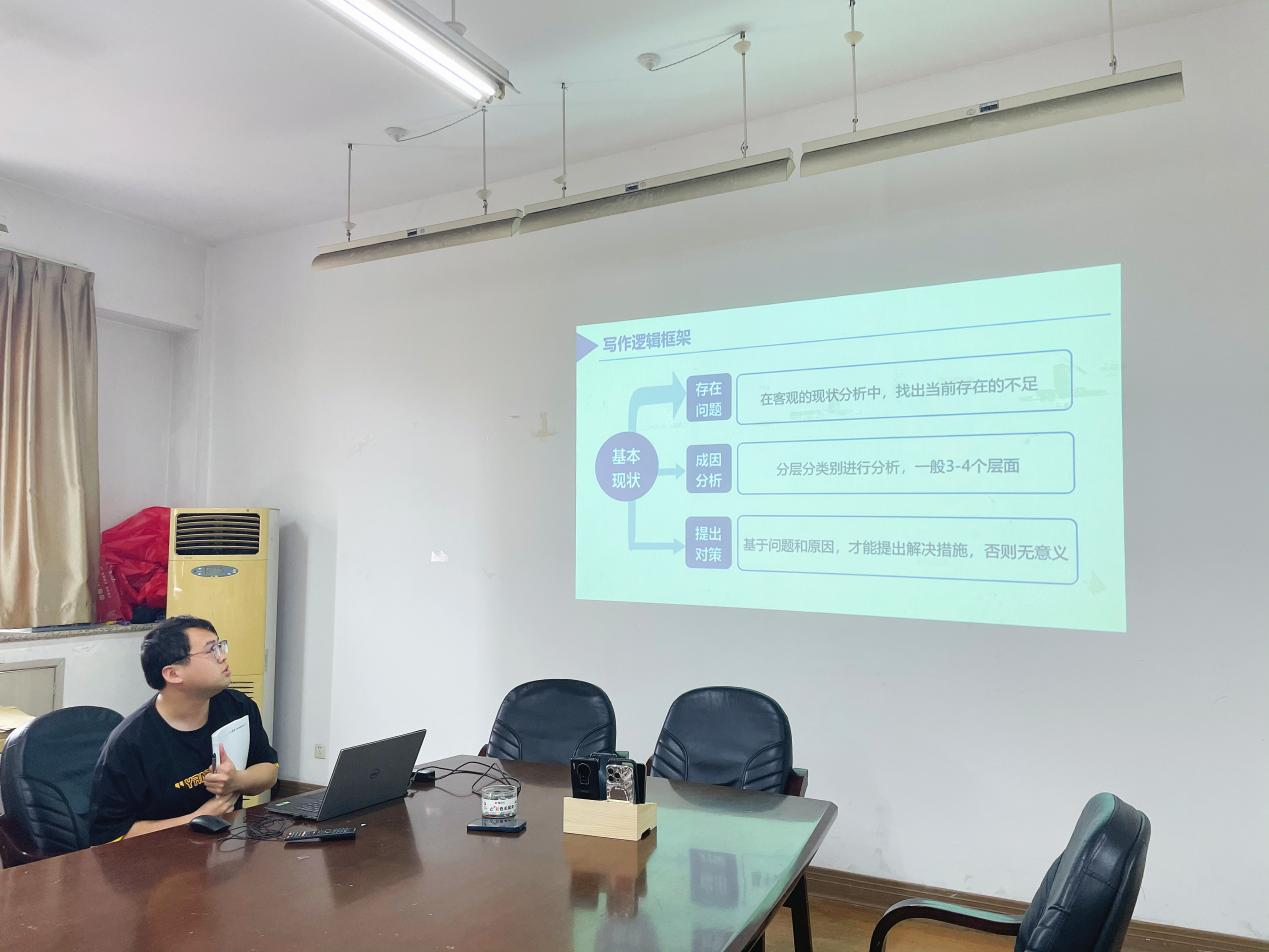 会议伊始,辅导员马红雷分享了他的写作心得。他深入讲解了写作的逻辑框架、构思维度、标题取名以及格式结构等关键要素。马红雷强调,掌握良好的写作技巧不仅能够提高工作效率,还能增强表达的清晰度和逻辑性。