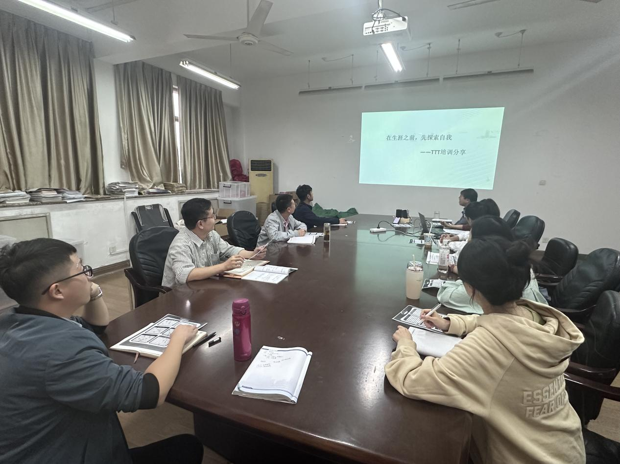 随后,辅导员陆昳琴分享了她参与TTT(Training the Trainer to Train)培训的课程内容和实用工具。陆昳琴详细介绍了培训中的互动式教学方法和参与式学习策略,并分享了此次培训的心得体会。