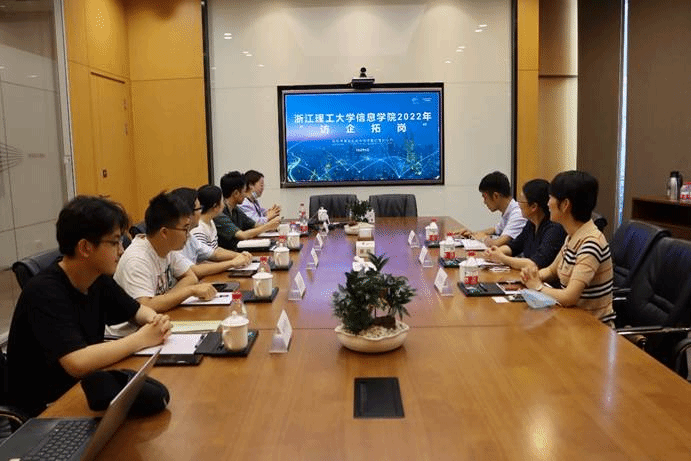 随后,在会议室进行了交流座谈。郭星甫首先介绍了海康威视的公司业务、公司发展情况以及理工校友在职数据等。老中青三位校友分别回忆了在校的学习经历以及毕业后的工作经历,分享了个人职业生涯发展的心得体会,表达了对母校的感恩之情,怀念校园时的美好时光,渴望有空能够回校看看。包新春结合本次访企拓岗专题调研,与海康威视公司就建立学生实习、就业等校企合作进行了深入交流,就2022届学生就业和2023届学生实习以及秋招的具体事项进行了沟通。黄黎表示,此次走访了解到海康有500余名浙江理工大学校友,让人欣喜,也感谢海康对理工人才培养质量的肯定。希望此次海康之行,也为今后建立更好的合作交流打下了基础。同时邀请在海康威视工作的校友多回母校看看,助力学院共同提高人才培养质量。