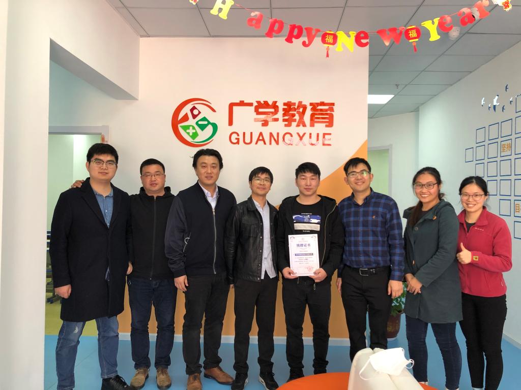 仪式上,彭轻羽和校友企业部门负责人向学校老师介绍了企业发展现状和未来发展方向,一行人共同参观了校友企业的两个分部。据悉,杭州珺博信息技术有限公司创立于2018年,是一家教育资源服务提供商,致力于把教育带到每个人、每个家庭、每个团体,构建想学即教、学有所学、随时可学、随地可学的智能教育产业链。另外,杭州珺博还向学校和下沙多个社区投放了一批电动自行车充电桩,自主研发了云端管理模块实现电动自行车充电桩的远程控制,积累了大量的云端数据,实现了电动车安全充电的云端监管。