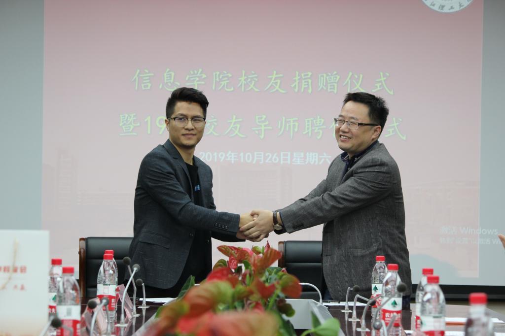 10月26日上午,正值浙江理工大学122周年“秩年归·忆芳华”校友返校活动开启之际,我院在行政楼215会议室举行校友捐赠仪式暨19级校友导师聘任仪式,浙江理工大学校友办副主任应黎君,学院副院长蒋明峰,党委副书记方水明,13届校友、小英雄机器人创始人潘绍永和14、15级校友导师出席了本次活动。会议由信息学院校友联络服务中心主任尹小虎主持。