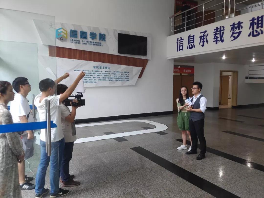 6月20日上午,浙江理工大学携手腾讯浙江带来一场校园开放日直播,我院09级优秀校友、小英雄机器人创始人钟炳海返校参与招生宣传直播。他与我院18级本科生洪柔佳共同向广大考生发出报名邀请,手语社成员与部分研究生也参与了此次直播。