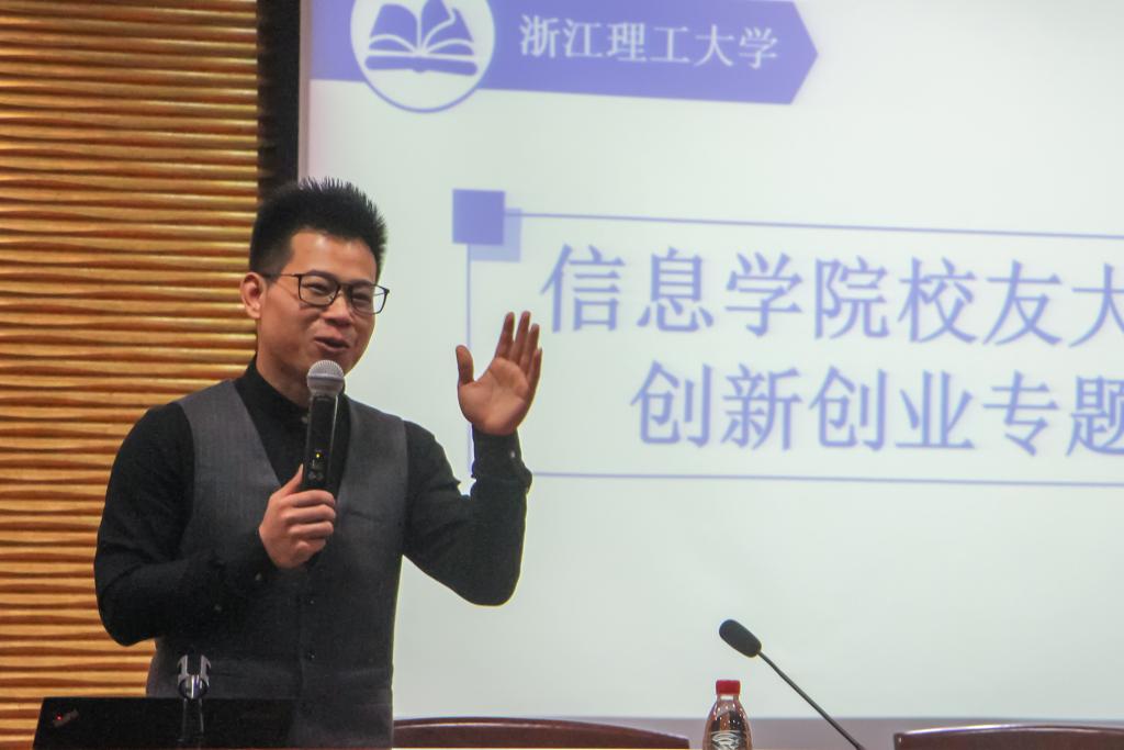 随后,钟炳海以时间为轴线,讲述了他从大学至今的创业经历并分享了他成功创业的心得和经验。他告诉同学们创业的三个要点:一是实践,大学期间他通过各种小生意将自己创业的想法积极实践起来;二是目标,他用切身的经历告诉同学们只有找到自己真正感兴趣的事情,才能努力为之奋斗,逐步走向成功;三是伙伴,寻找与自己志同道合的伙伴,相互鼓励、相互陪伴、相互成长,让自己的创业之路不再孤单。他还特别强调了学习力,找到属于自己的学习方法,迎难而上,踏踏实实走好每一步路,才会迎来属于自己的成功。最后,钟炳海简短地向同学们介绍了杭州小英雄机器人培训机构的基本情况,也向未来有想法到机构工作的同学们表示了热烈的欢迎。