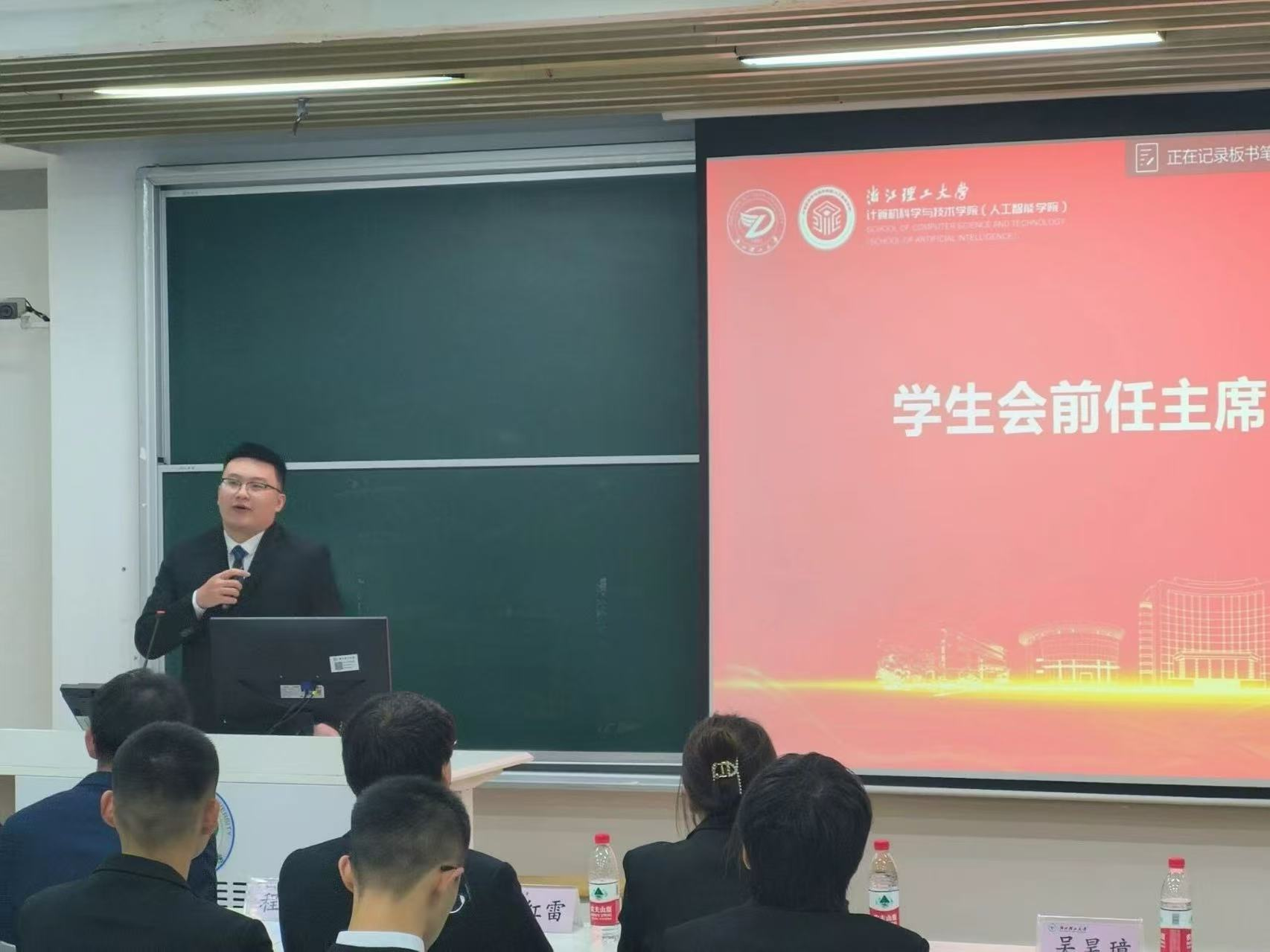 11月 16 日,浙江理工大学计算机科学与技术学院(人工智能学院)第四届学生会全体大会在 2 号楼 N219 举行,指导老师马红雷、现任及前任主席团成员、优秀校友吴昊璋与全体成员参会。