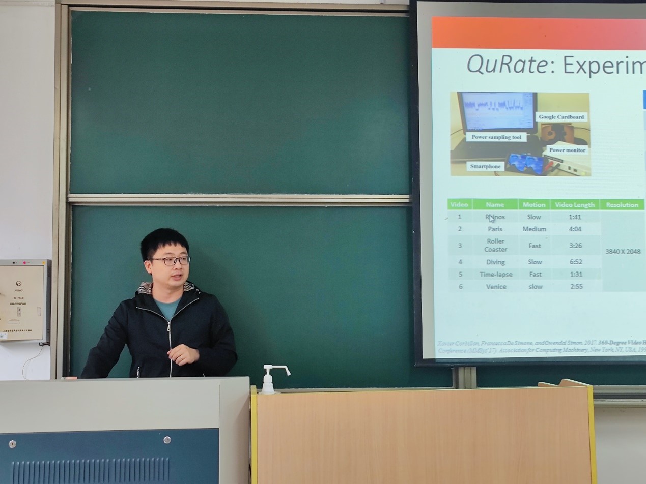 姜楠结合了当下较火的虚拟现实(VR)和VR设备的功耗问题,提出了《基于视频渲染的虚拟现实视频低功耗优》的解决方案。姜楠老师将这篇论文的写作过程:问题的提出、方法的确定、实验的设置、实验结果的分析等向大家作了介绍,使同学们对论文写作过程有了更深入的认识。