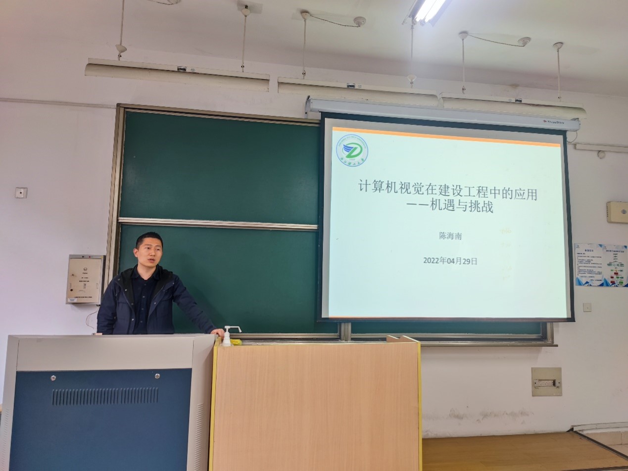 陈海南老师则结合了自己人工智能及计算机与土木工程交叉的教育背景,向同学们科普引入土木工程与人工智能结合、共同解决问题的案例,大大节省了人力物力并且提高了工作效率。随者科技的进步与其他方面的考量,计算机视觉等人工智能的技术在建设工程领域中应用的也越来越广泛,这是一种机遇也是挑战。