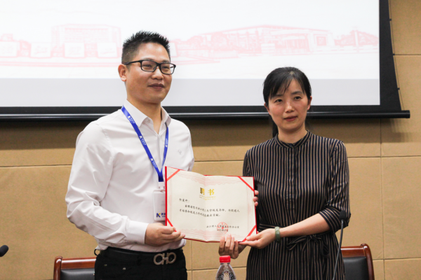 会议伊始,校友办公室主任陈艳为励建科颁发了校友导师聘书。陈艳致辞。她代表学校对励建科一行的到来表示欢迎,并期待励总有更多的机会可以常回母校看看。