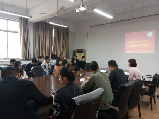 信息学院于4月26日在10号楼420举行了2019届毕业生就业精准帮扶座谈。信息学院15级辅导员黄诗莹、普开哈督普数据中心相关工作人员及部分就业困难学生出席了本次座谈会。座谈会围绕就业困难毕业生求职过程所面临的问题展开讨论。
