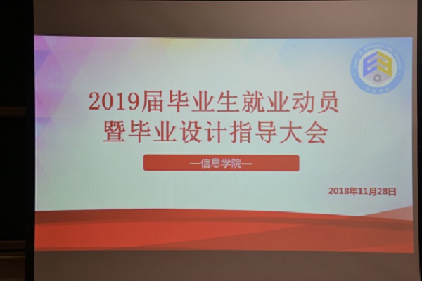 为更好地指导和动员2019届毕业生就业工作,认清就业形势,把握就业机会,11月28日,我院2019届毕业生就业动员与毕业设计指导会在2N-129召开。出席此次会议的有学院党委副书记方水明,副院长姚青,15级辅导员黄诗莹,大会由黄诗莹主持。