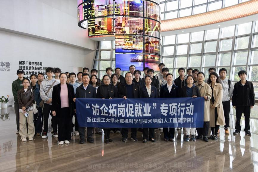为深入加强校企合作,拓宽学生实习与就业渠道,10月30日下午,计算机科学与技术学院(人工智能学院)党政领导班子——党委书记黄黎、副院长潜睿睿、党委副书记朱敏、学术副院长相东明等,携学院学生代表一行赴杭州华数传媒电视网络有限公司开展“访企拓岗”专项行动。杭州华数传媒电视网络有限公司党委副书记沈子强,临平华数党委书记、执行董事、总经理印天石,党委副书记黄兰洁,党委委员胡佳,财务总监李丹,以及“杨雪良工作室”负责人杨雪良和近年入职公司的校友代表热情接待并参与座谈交流。
