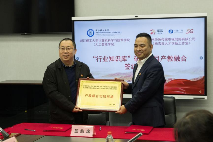 随后,双方举行座谈,并正式签署《浙江理工大学计算机科学与技术学院(人工智能学院)与临平华数杨雪良人才创新工作室战略合作协议》及《“行业知识库”研究项目产教融合合作协议》。
