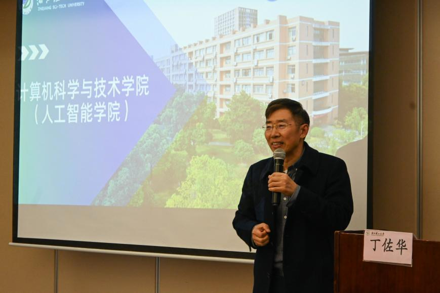 院长丁佐华从师资力量、科研团队、项目平台、专业课程、学科竞赛等方面对学院的发展现状和规划进行了全面的阐述,并总结了我院在智能科学与技术专业建设中的优势与不足。
