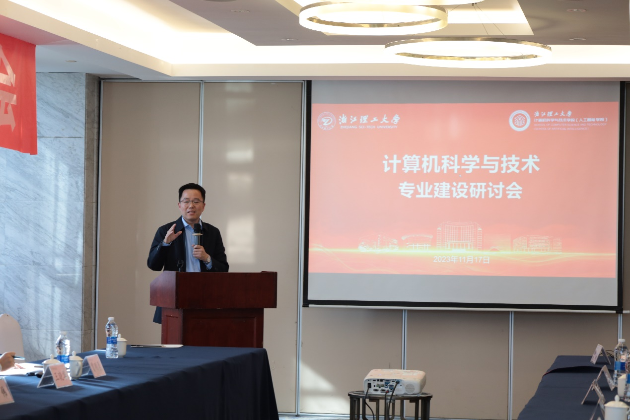 11月17日,浙江理工大学计算机科学与技术学院(人工智能学院)召开了计算机科学与技术专业建设研讨会。浙江理工大学教务处处长王尧骏致辞,计算机学院党委书记黄黎、院长丁佐华、副院长姚青以及专业相关负责人和专业教师等30余人参加会议,专业负责人沈炜主持会议。