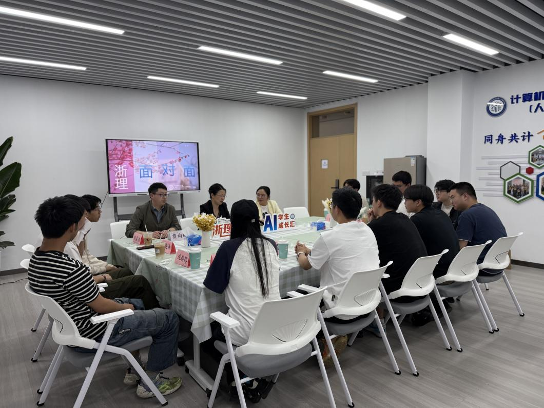为深入落实立德树人根本任务,迎接本科教育教学审核评估,持续深化基层调研,精准把握学生需求,优化学生成长服务体系,构建协同育人长效机制,搭建师生有效沟通桥梁,4月16日下午,计算机学院首场“浙理面对面·AI学生成长汇”师生互动交流活动在10-133举行。学院党委书记黄黎、辅导员代表以及各年级专业学生代表参加活动,活动由学院党委副书记朱敏主持。